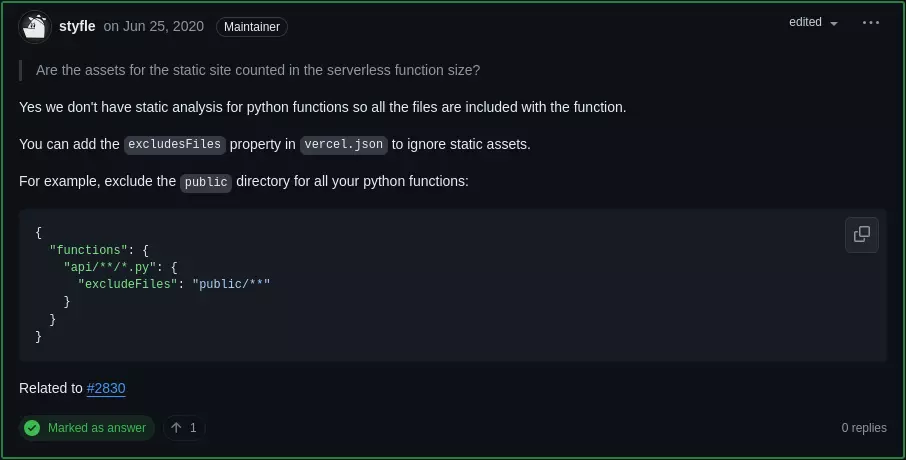 Errors are also opaque. The showstopper for getting my Python backend deployed successfully on Vercel was an unintuitive error message: data too long.